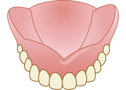 全ての歯を失った場合に使用。金属バネのない入れ歯も対応